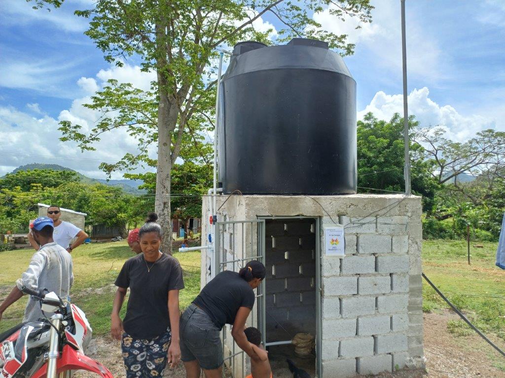 Op 30 juni is de bouw afgerond. Allen de aanleg van de leidingen, door de dorpsbewoners, resteert.
